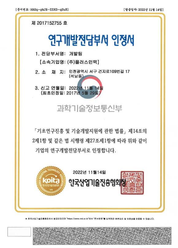 연구개발 인정서
